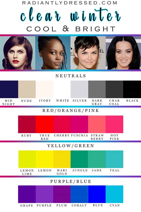 Bright clear winter seasonal colour guide Artofit Colors Clear Winter Discover the perfect clear winter color palette! Come explore the shocking brights of clear winter. True black, optic white, and silver. Get hex code, rgb, hsb, hsl values for stunning winter palettes. Winters have a cool or neutral to. Clear winters have the contrast typical of winters, they also have a clarity in their features, reminiscent of spring. They commonly. Colors Clear Winter.